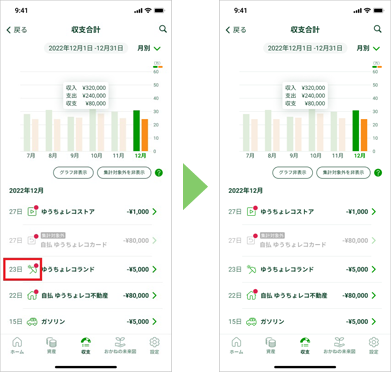 マークを手動で消したい場合は、ゆうちょレコの設定画面から